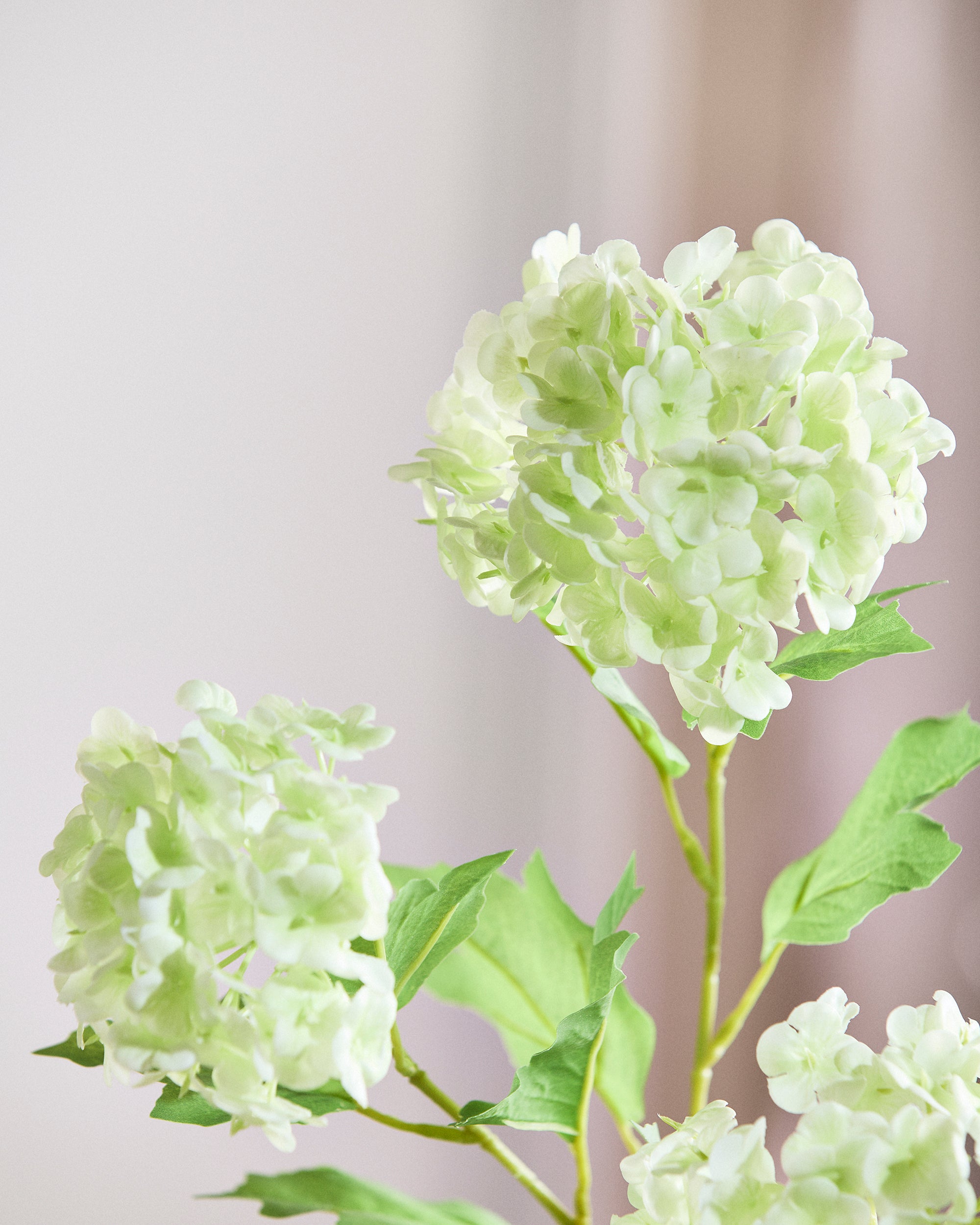 Vi præsenterer vores naturtro, trehovedet hortensia — en elegant og tidløs blomsterdekoration, der tilfører et rent og stilfuldt præg til ethvert rum.