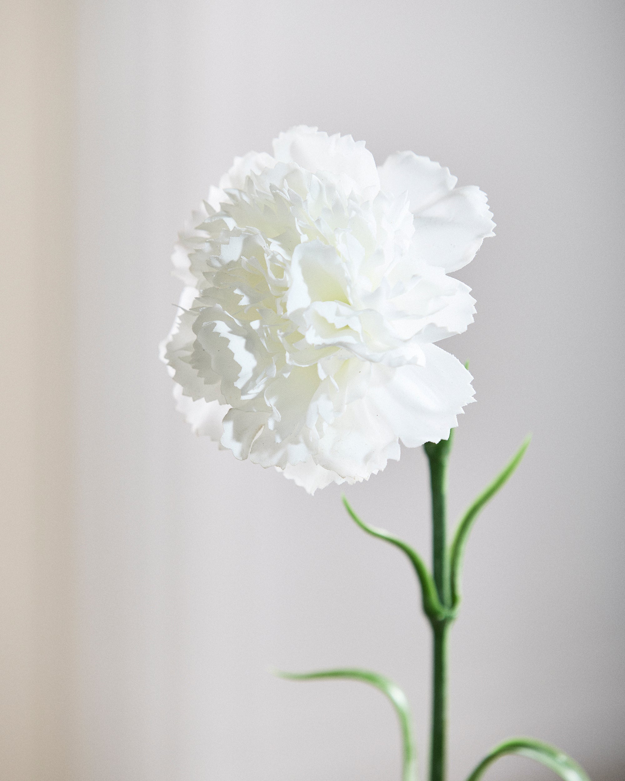 Vores Nellike i hvid er en stilk med et naturtro og elegant udtryk, der bringer varme og blødhed ind i enhver buket eller dekoration.