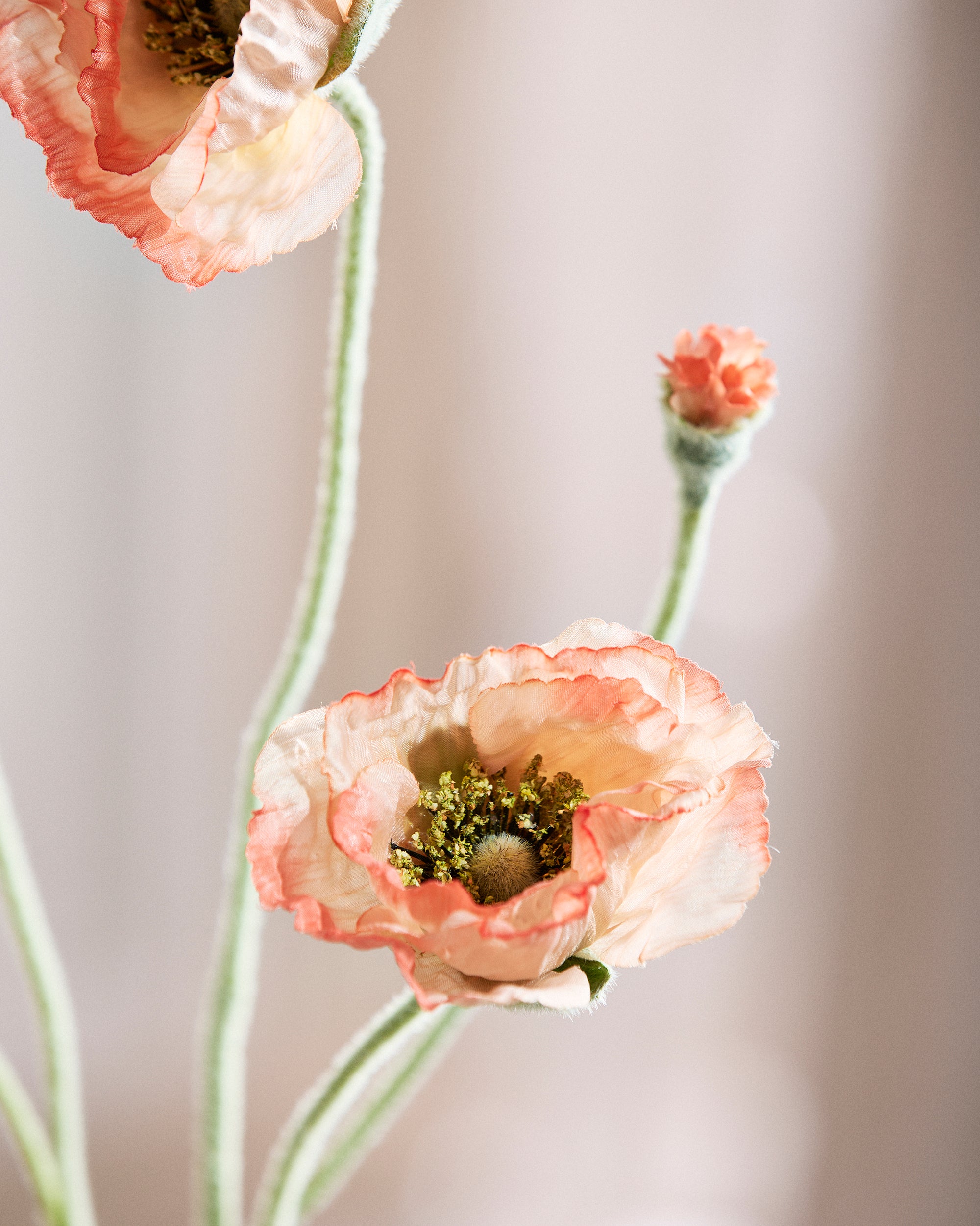 Hvis nogle stilke ser lidt flade ud efter transport, kan du nemt få dem pæne igen. Kør forsigtigt fingrene igennem blomsten for at puffe den op, eller bøj stilken lidt ved hjælp af den fleksible ståltråd indeni.