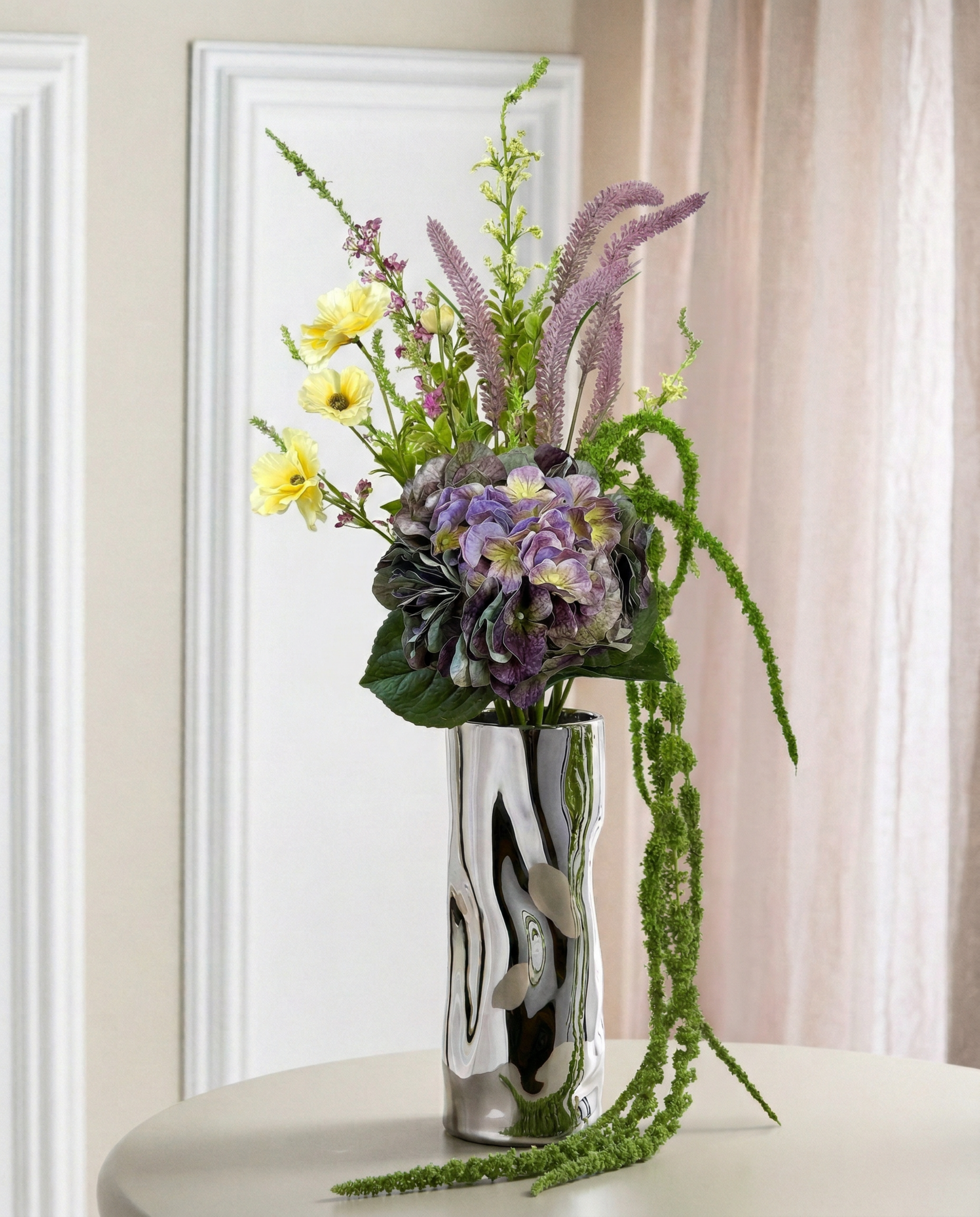 Buketten er skabt til dig, der ønsker et naturtro og vedligeholdelsesfrit alternativ til friske blomster. Alle stilke kan formes, bøjes og klippes til med en skævbider, så du nemt kan justere både højde og fylde, præcis som du ønsker det.