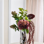 Falling for Fall er en dyb og dramatisk buket der med sine mørkerøde hortensiaer og mørke anthurium, markerer sine detaljer og afbalanceres med sine grønne elementer. Perfekt til dig som ønsker en buket med moderne kant, og et stærkt og selvsikkert statement til dit hjem.