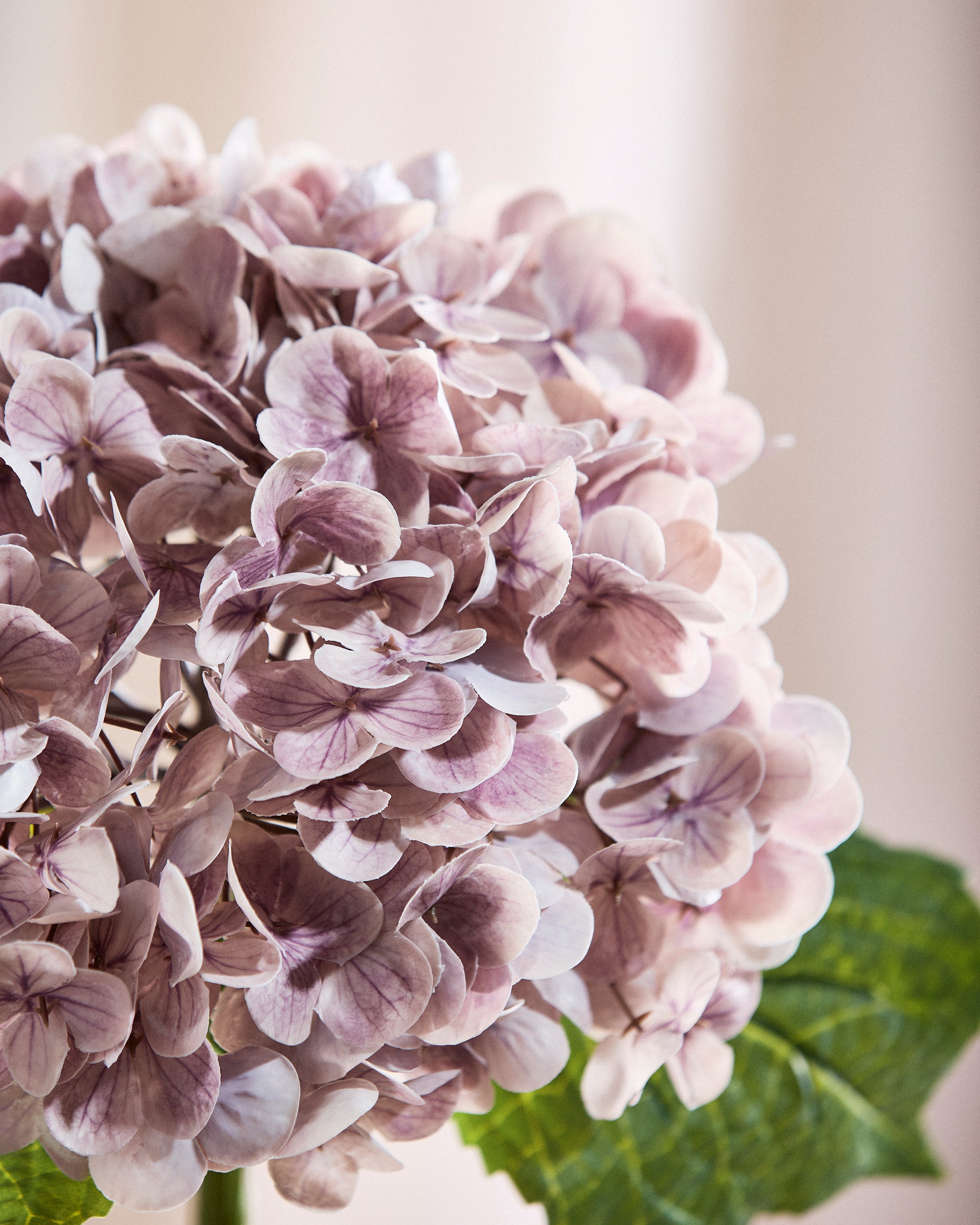 Vores pragtfulde Hortensia Blomster er imponerende naturtro med deres naturlige teksturer og autentiske årer på de livlige grønne blade, alt sammen med til at skabe et overordnet realistisk udseende. Disse blomster er ikke kun visuelt fortryllende, men tilføjer også en taktil dimension med deres livagtige struktur.