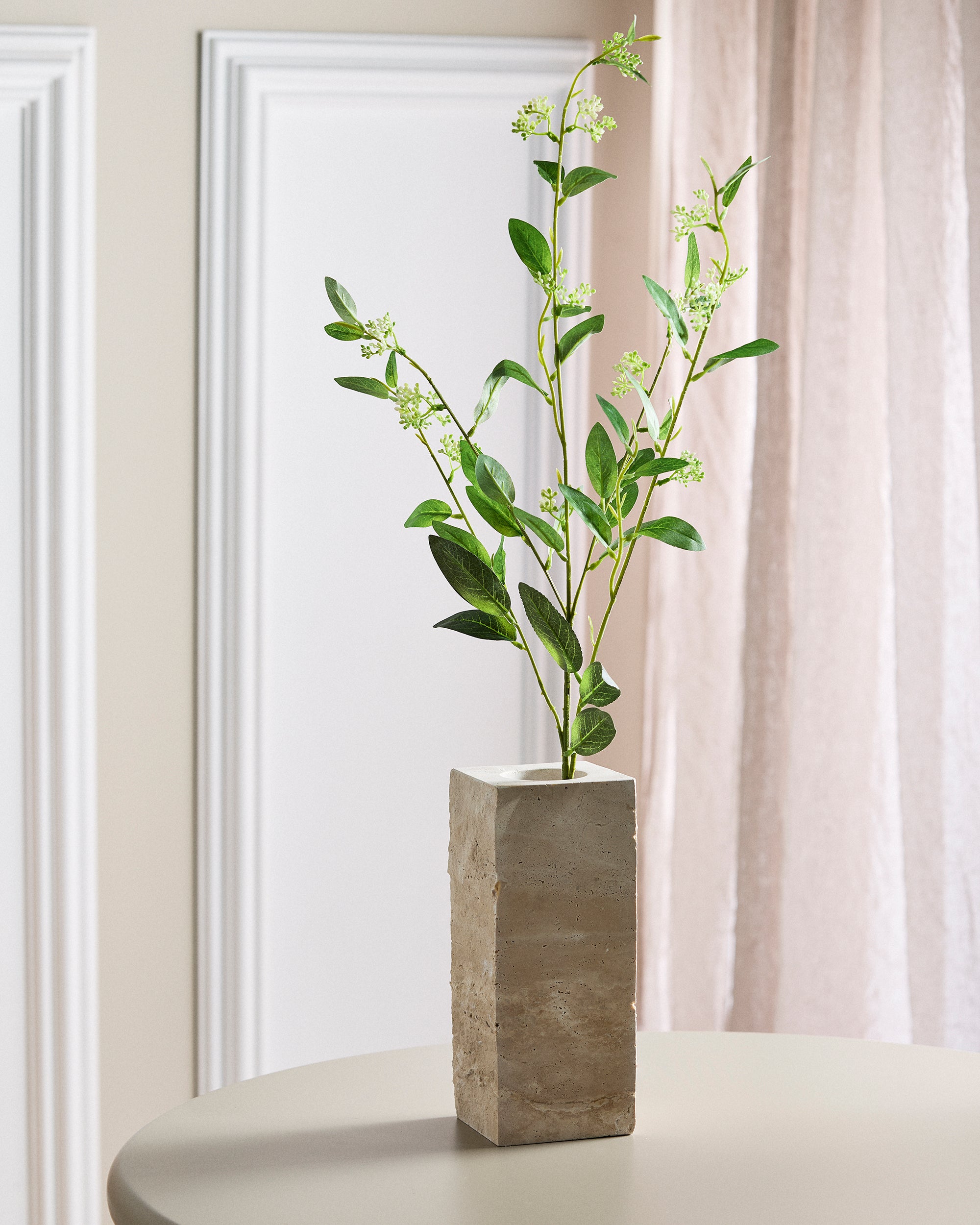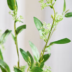 Grenens slanke form og de spredte klynger af små bær skaber et enkelt og naturligt udtryk, der passer perfekt til både minimalistiske buketter og større, mere fyldige arrangementer. De fine bær tilfører tekstur og variation, mens de bløde blade giver en rolig, grøn baggrund, der balancerer buketten smukt.