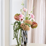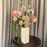 Sugar Blush er en blid og luftig buket i sarte toner af rosa, fersken og lyserød. Et stille strejf af sødme, med et let og romantisk udtryk, der føles som solskin på kinden.