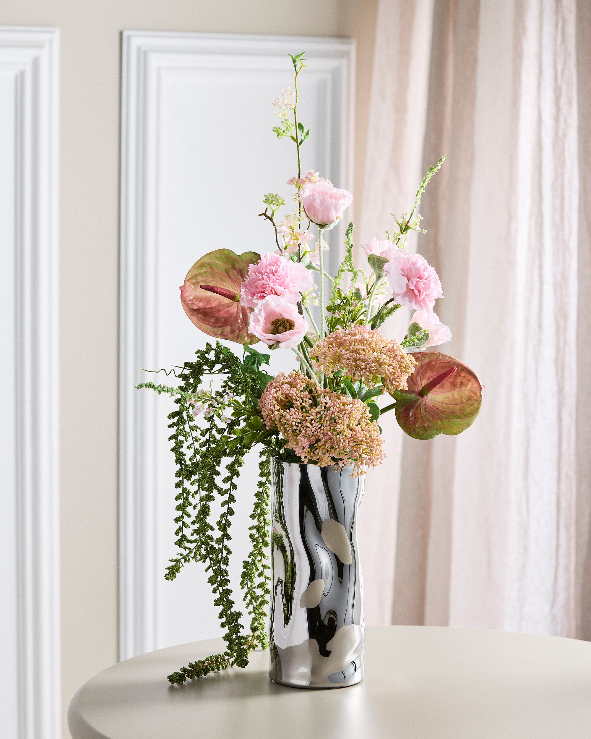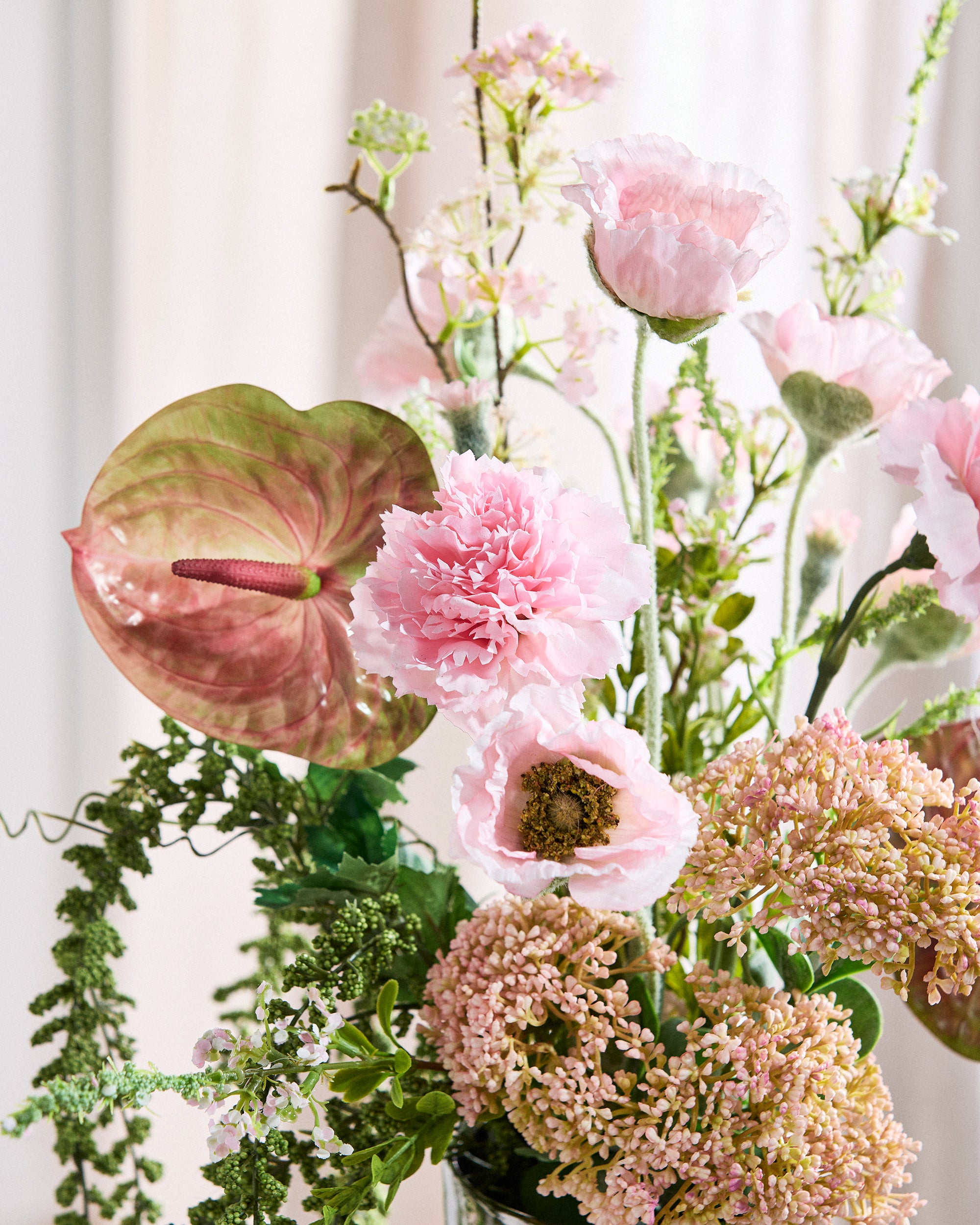 Hvis nogle stilke ser lidt flade ud efter transport, kan du nemt få dem pæne igen. Kør forsigtigt fingrene igennem blomsten for at puffe den op, eller bøj stilken lidt ved hjælp af den fleksible ståltråd indeni.