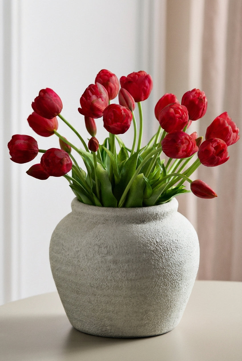 Hver tulipan er håndlavet i blød latex med lag på lag af kronblade i fine nuancer og subtile variationer i både form og overflade. Det skaber en realisme og fylde, der fanger essensen af friske tulipaner – så naturtro, at det næsten er umuligt at se forskel.