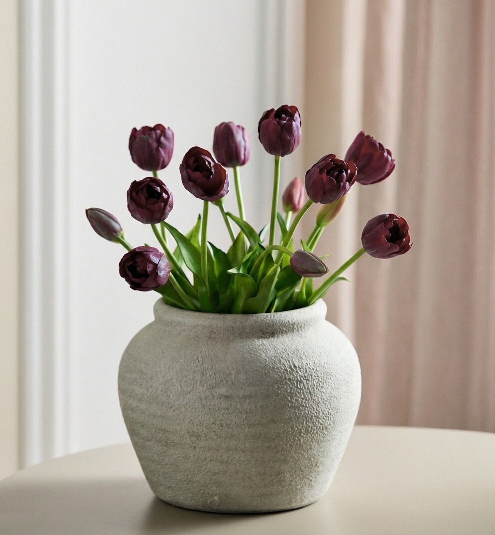 Hver tulipan er håndlavet i blød latex med lag på lag af kronblade i fine nuancer og subtile variationer i både form og overflade. Det skaber en realisme og fylde, der fanger essensen af friske tulipaner – så naturtro, at det næsten er umuligt at se forskel.