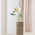 Blomsten er udført i luksus real touch-kvalitet af ultrafin tekstil, så den både ser naturtro ud og føles næsten som en ægte ranunkel.
