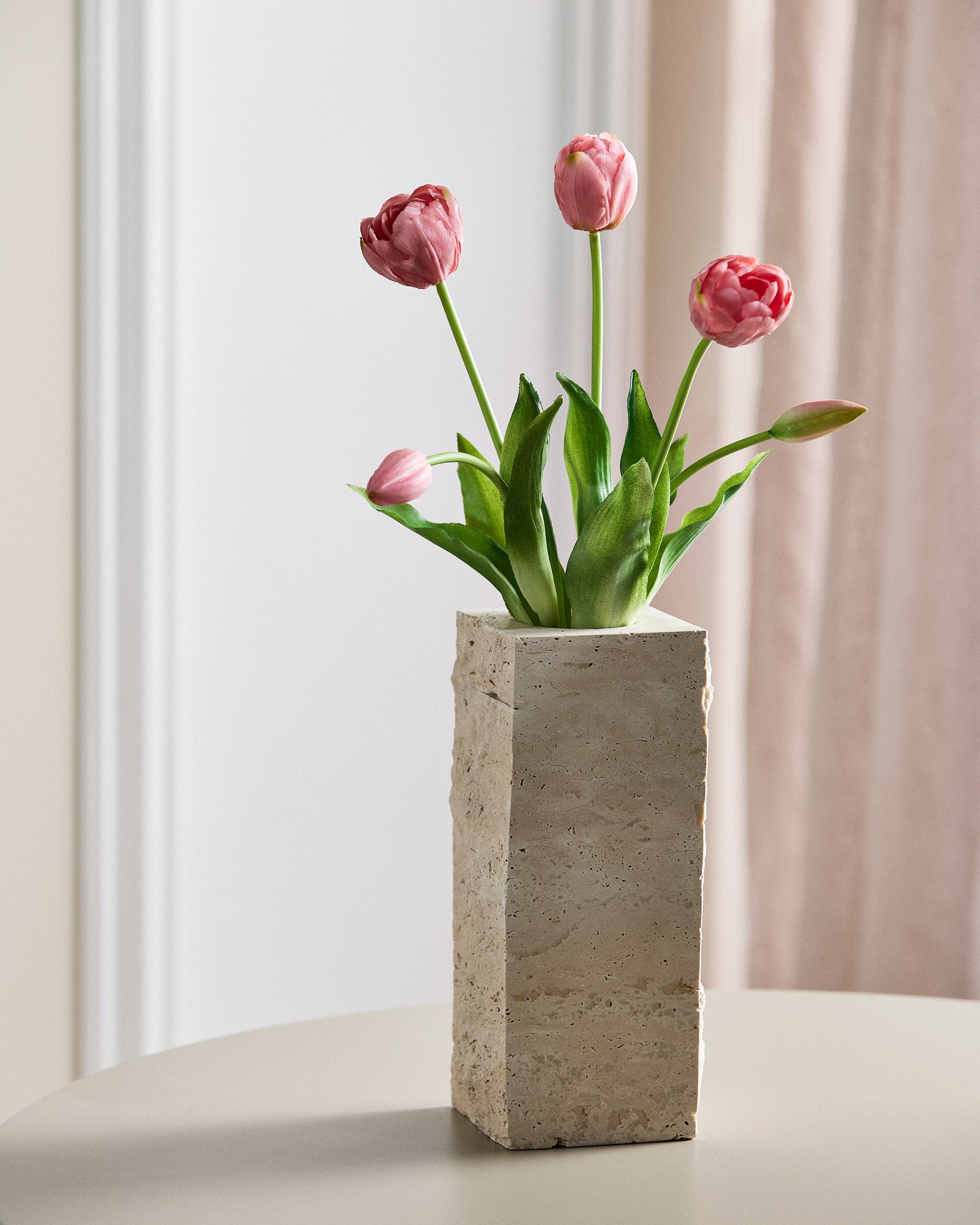Hver tulipan er håndlavet i blød latex med lag på lag af kronblade i fine nuancer og subtile variationer i både form og overflade. Det skaber en realisme og fylde, der fanger essensen af friske tulipaner – så naturtro, at det næsten er umuligt at se forskel.
