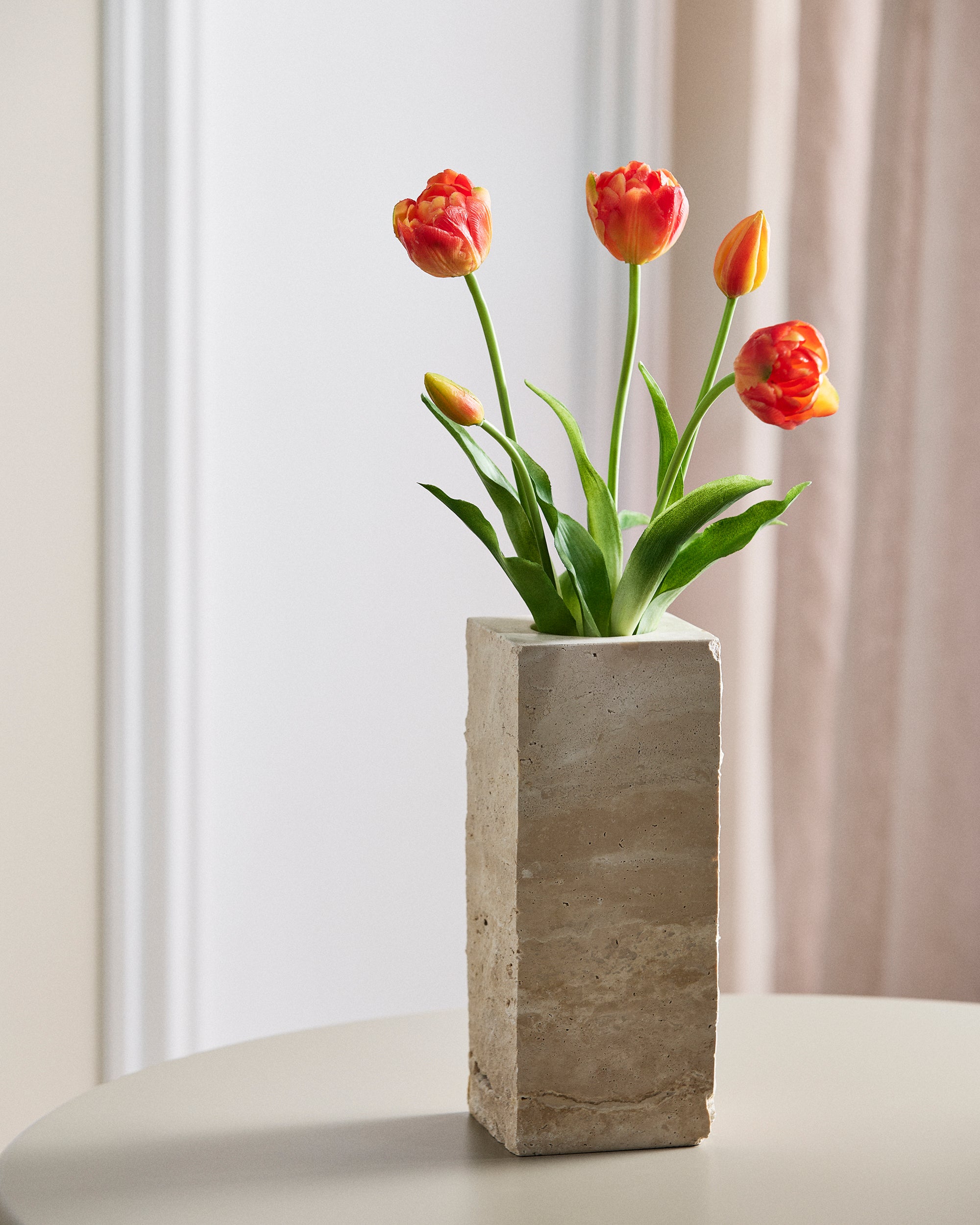 Hver tulipan er håndlavet i blød latex med lag på lag af kronblade i fine nuancer og subtile variationer i både form og overflade. Det skaber en realisme og fylde, der fanger essensen af friske tulipaner – så naturtro, at det næsten er umuligt at se forskel.