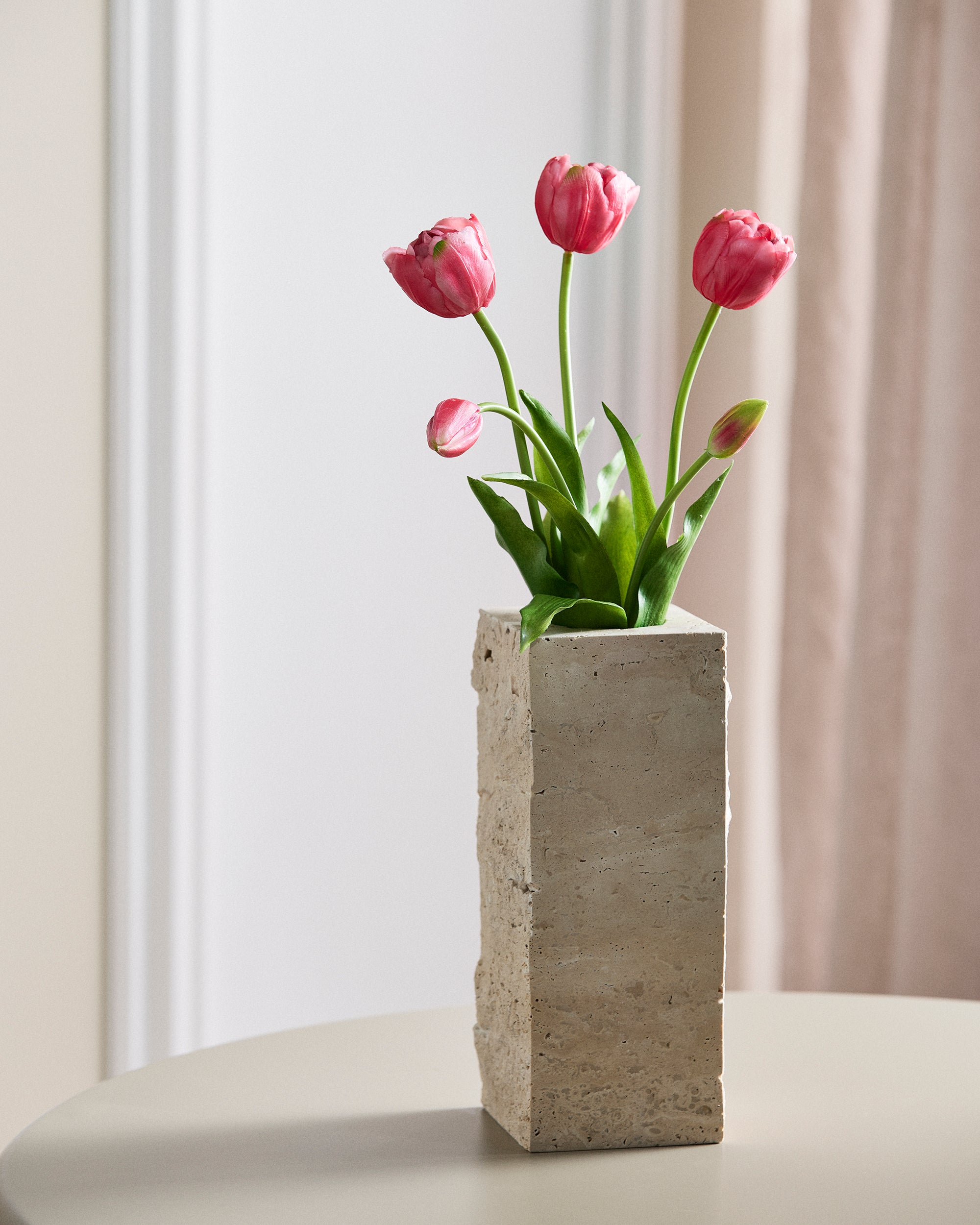 Hver tulipan er håndlavet i blød latex med lag på lag af kronblade i fine nuancer og subtile variationer i både form og overflade. Det skaber en realisme og fylde, der fanger essensen af friske tulipaner – så naturtro, at det næsten er umuligt at se forskel.