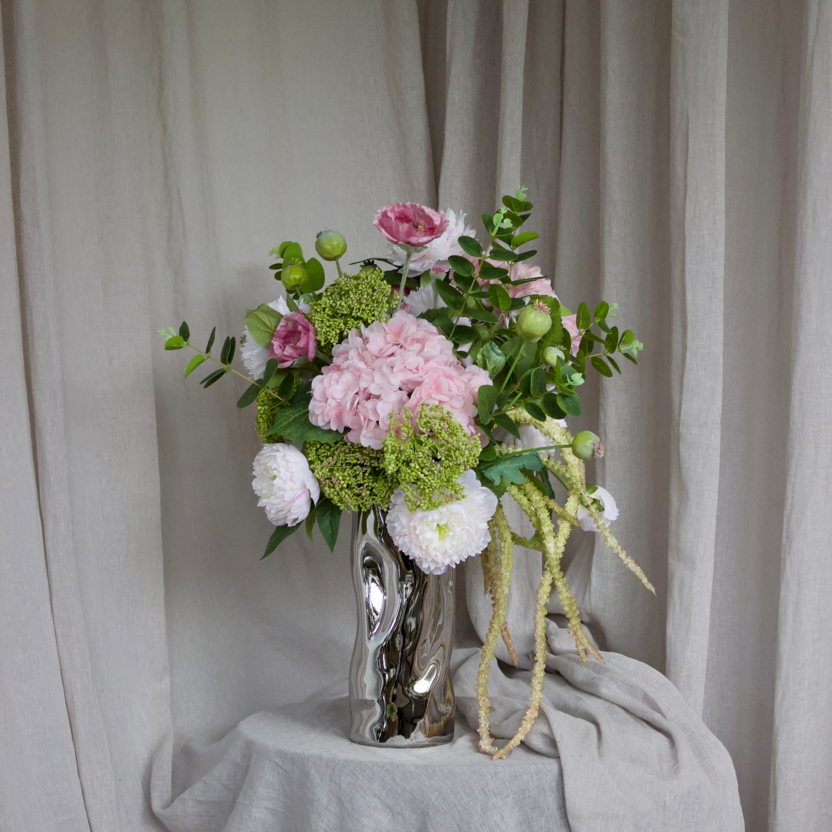 Her står buketten i vores Wave Vase, som måler 28 cm.