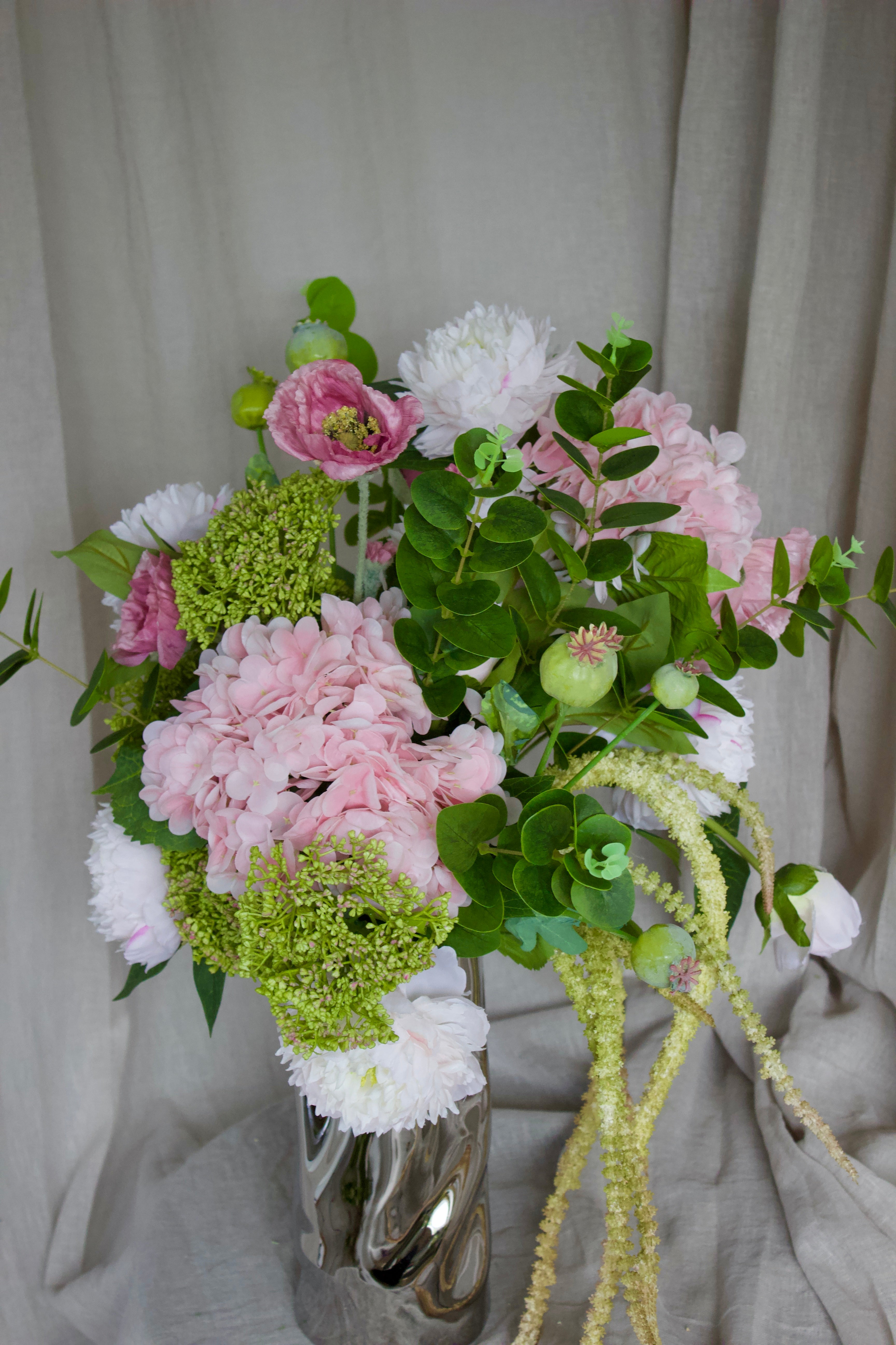 Hvis nogle stilke ser lidt flade ud efter transport, kan du nemt få dem pæne igen. Kør forsigtigt fingrene igennem blomsten for at puffe den op, eller bøj stilken lidt ved hjælp af den fleksible ståltråd indeni.