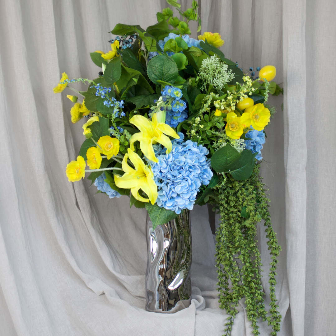 En overdådig buket, der ikke kan overses – fyldt med stærke kontraster, frodig fylde og et udtryk, der løfter ethvert rum. Den er skabt til at imponere og til at være det absolutte midtpunkt i din indretning.