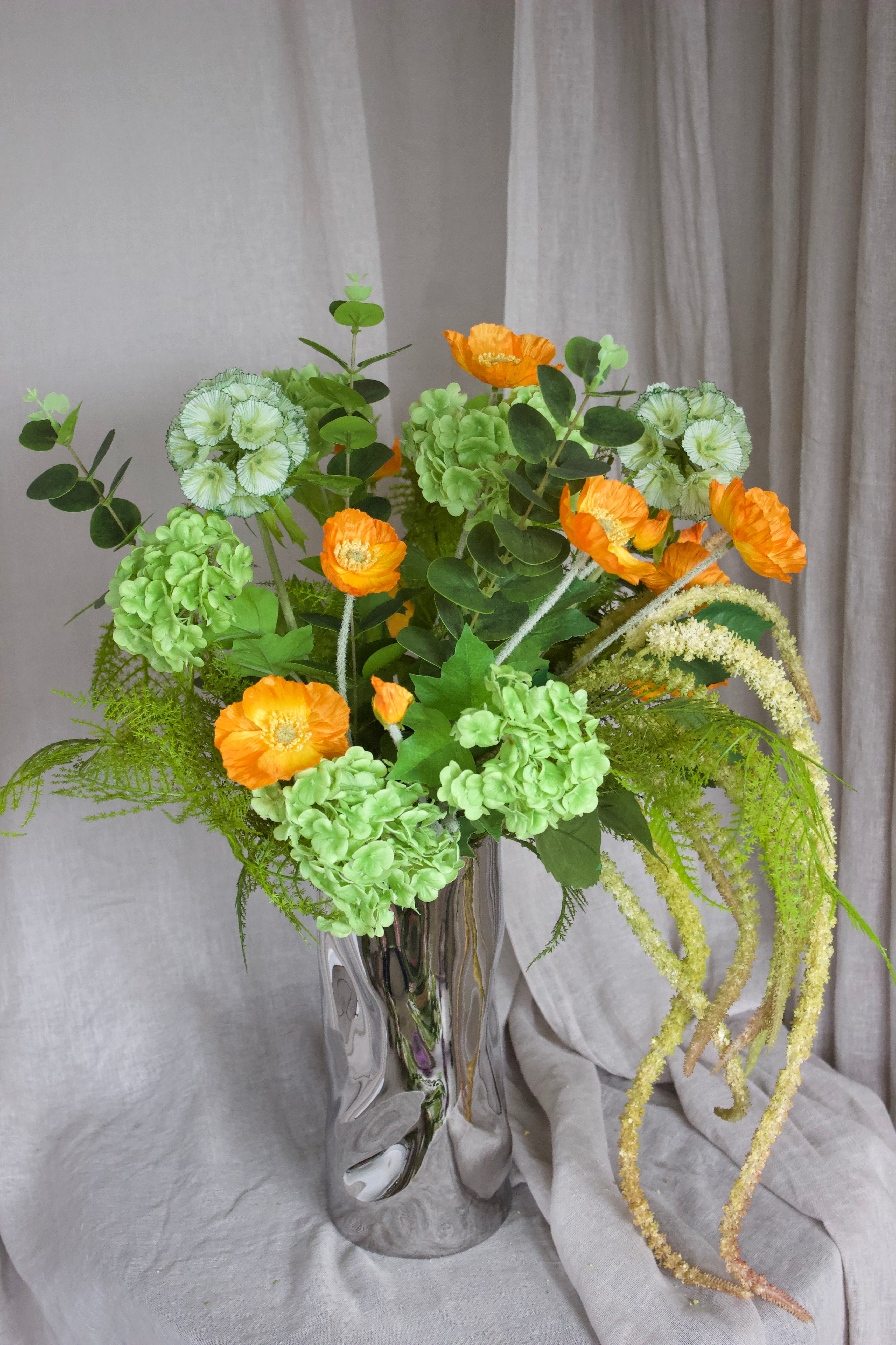 En overdådig buket, der ikke kan overses – fyldt med stærke kontraster, frodig fylde og et udtryk, der løfter ethvert rum. Den er skabt til at imponere og til at være det absolutte midtpunkt i din indretning.