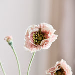 Karakterfuld valmue med store, krøllede kronblade, mørk midte og naturligt svaj i stilken. Den adskiller sig fra vores klassiske valmue ved at være større i blomsterhovedet og mere markant i udtrykket.