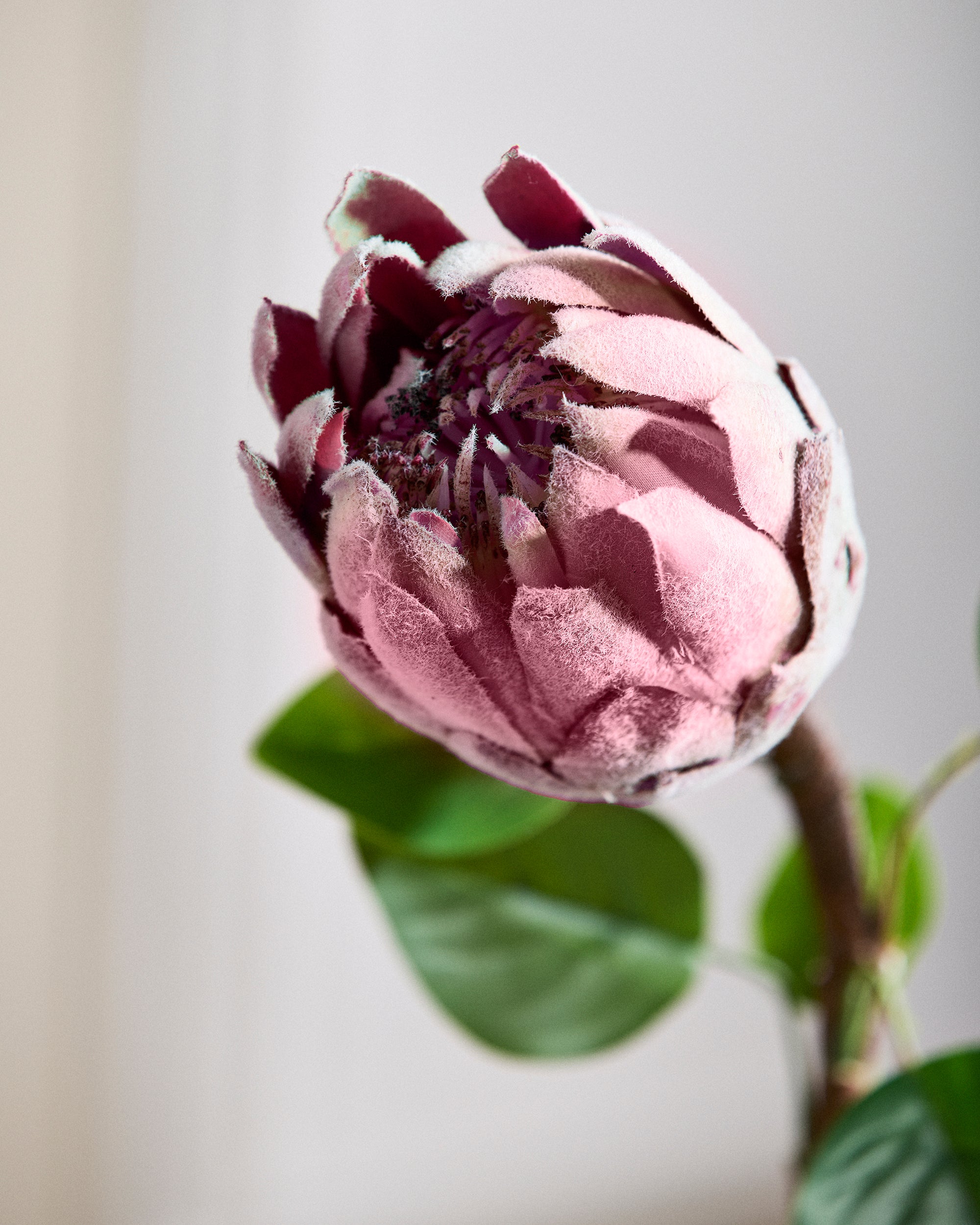 Hvis nogle stilke ser lidt flade ud efter transport, kan du nemt få dem pæne igen. Kør forsigtigt fingrene igennem blomsten for at puffe den op, eller bøj stilken lidt ved hjælp af den fleksible ståltråd indeni.