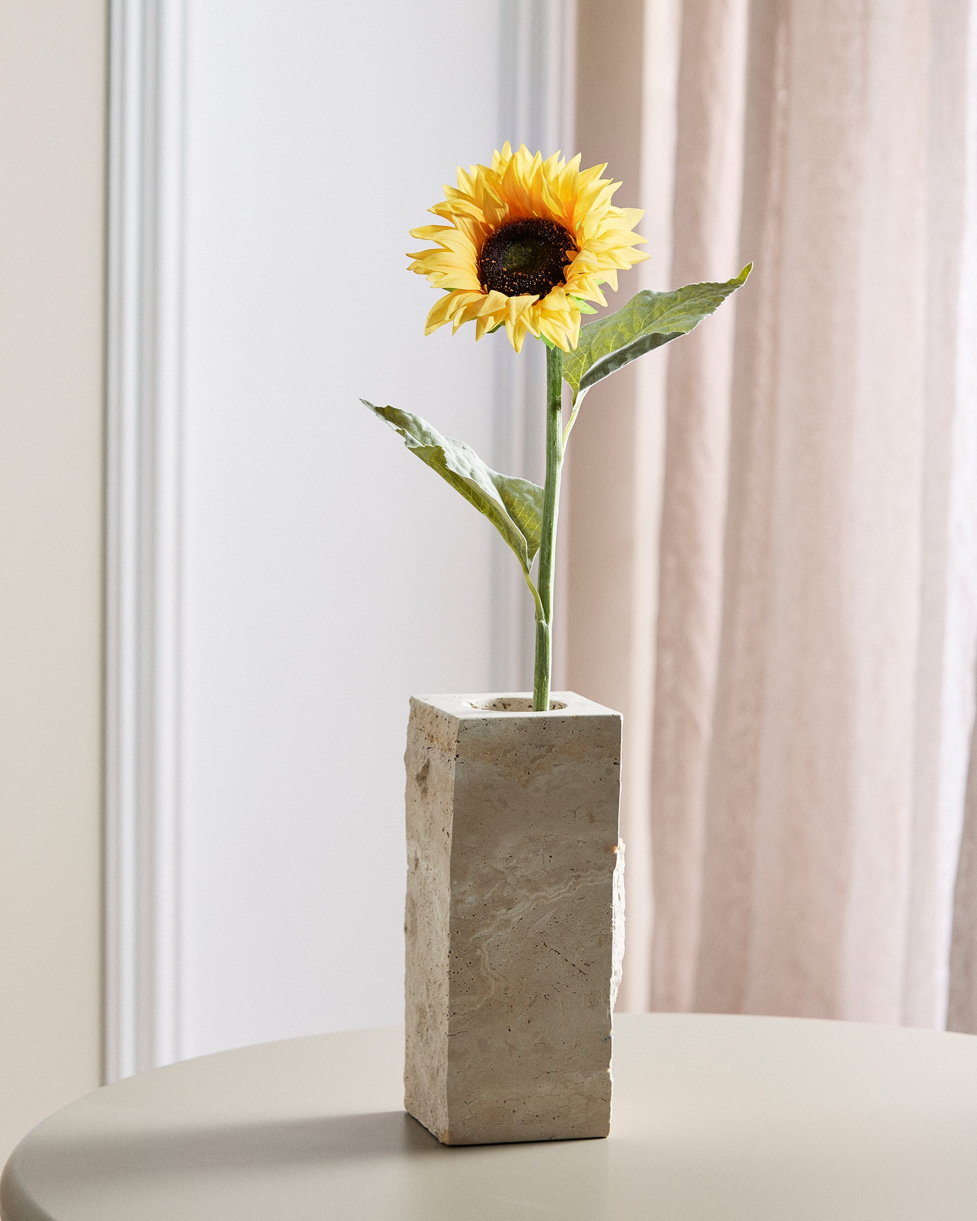 Naturtro solsikke med silkebløde kronblade i en smuk varm gul nuance. Lavet i latex med sans for selv de fineste detaljer – næsten som nyplukket.