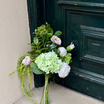 Vi anbefaler at lade snoren sidde på buketten, så blomsterne ikke ændrer position og forbliver, som den. er købt. Blomsterne kan selvfølgelig tilrettes som ønsket ved hjælp af en fleksibel stilk. Hvis du ønsker et løsere udtryk, kan du trække snoren længere ned ad stilkene.