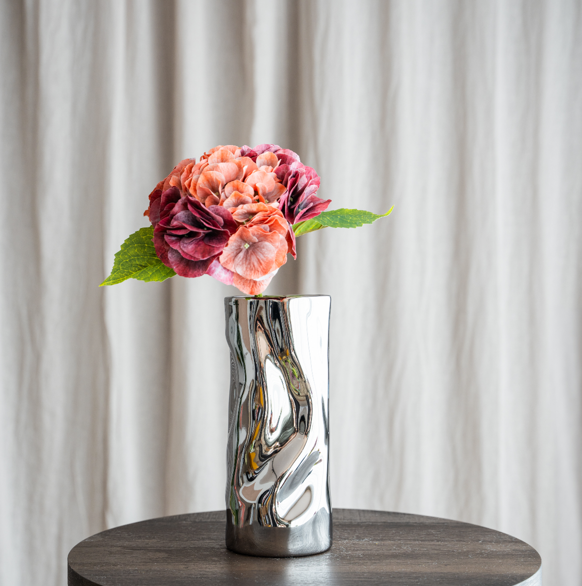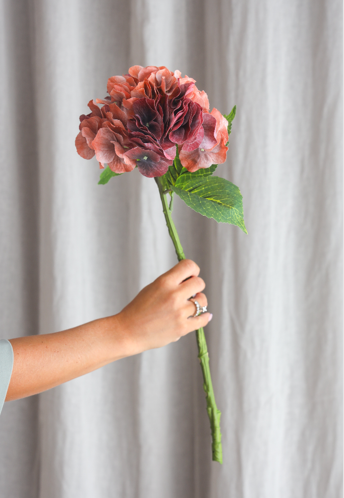Mere naturtro end nogensinde er den kunstige Store Vintage Hortensia en omhyggeligt fremstillet blomst, der indfanger den tidløse skønhed fra ægte hortensiaer. Kronbladene er lavet af højkvalitets latex, som giver en realistisk tekstur og udseende.